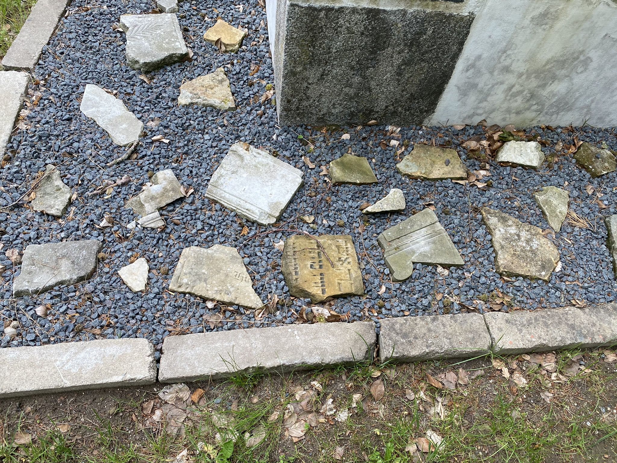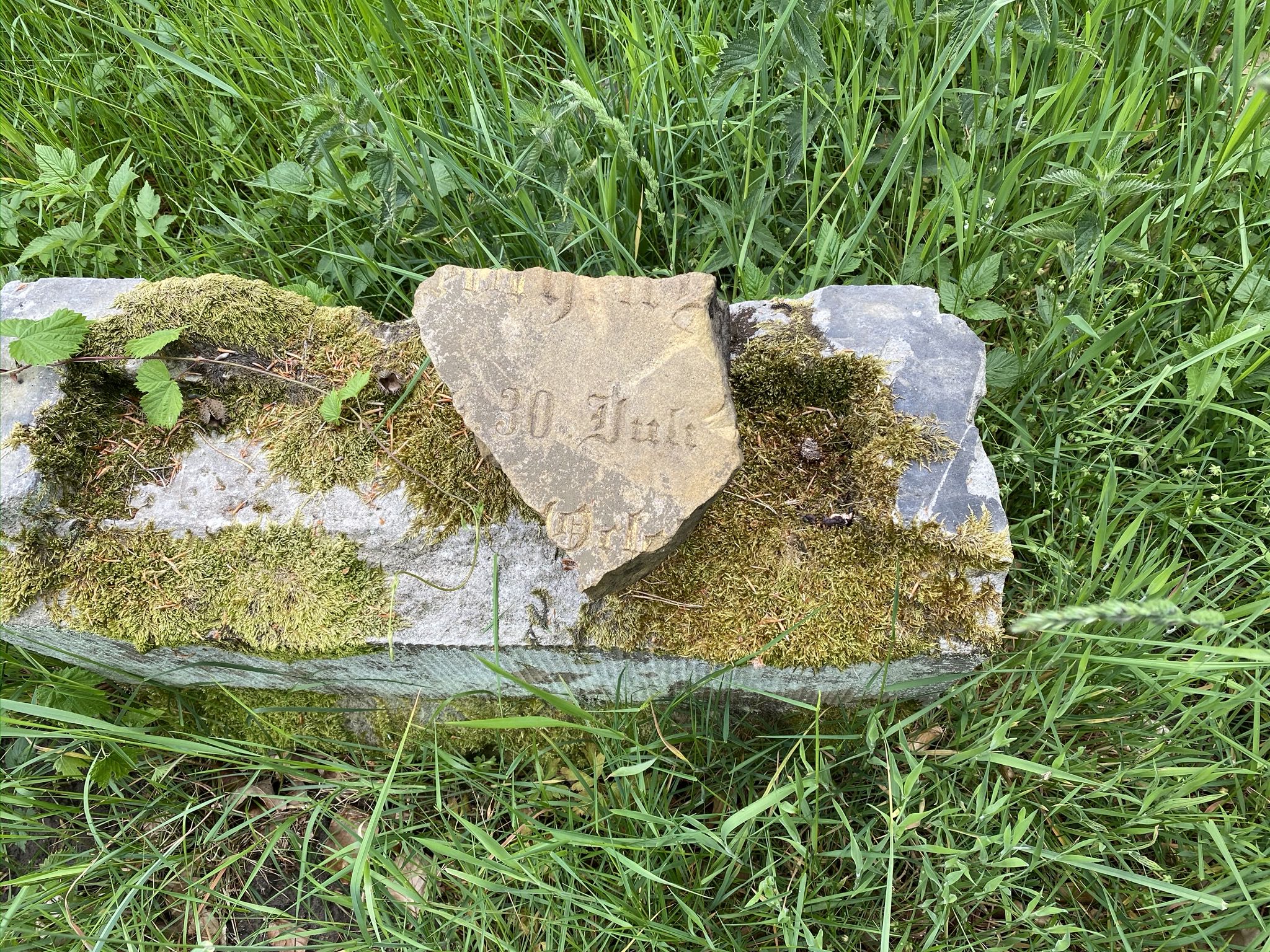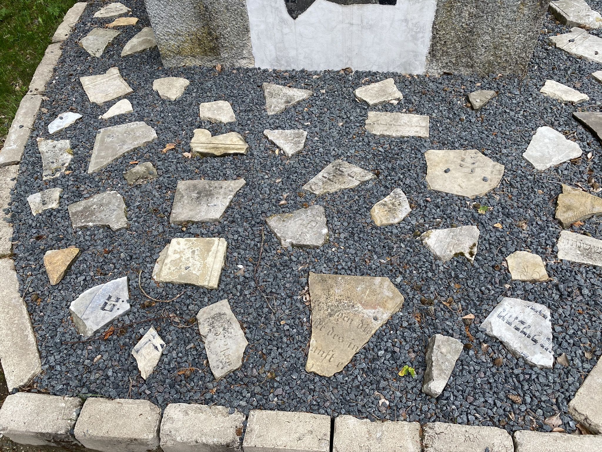 aus Bruchstücken zerstörter Grabsteine. Auf dem Friedhof sind noch