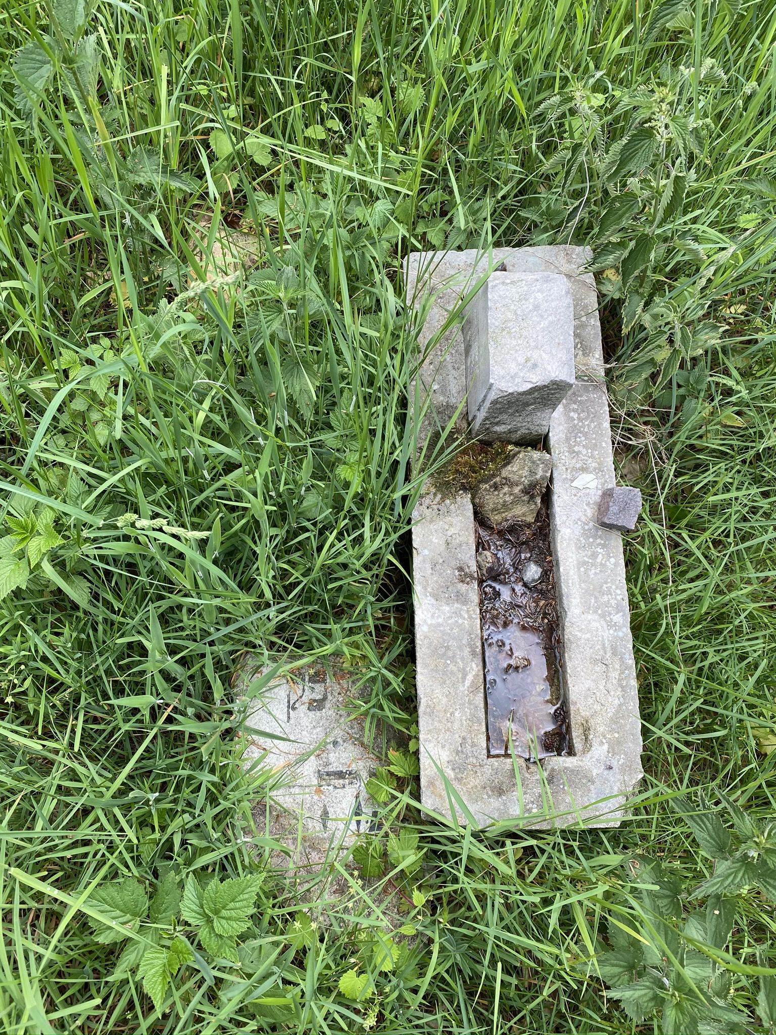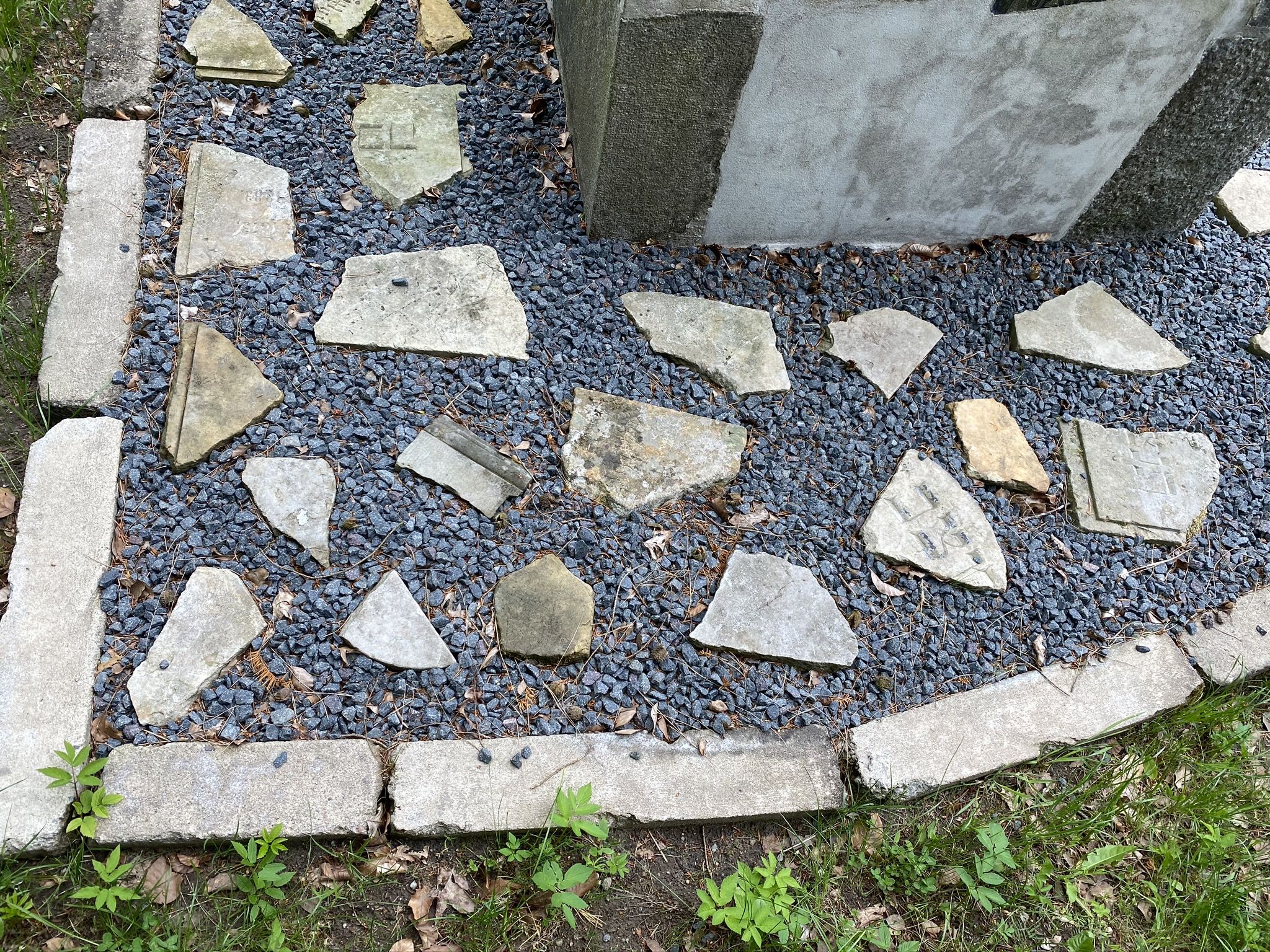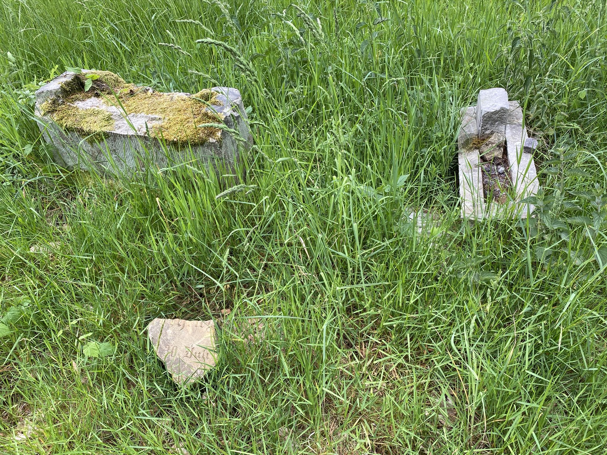 aus Bruchstücken zerstörter Grabsteine. Auf dem Friedhof sind noch