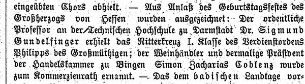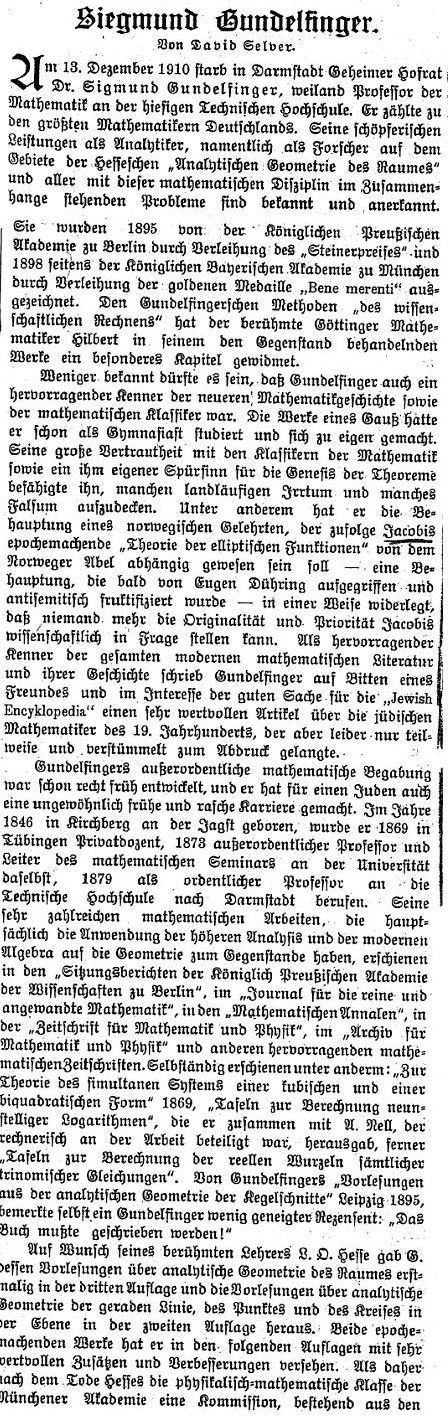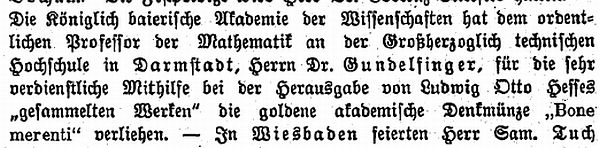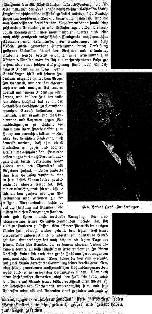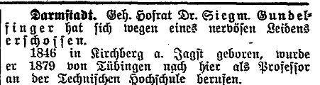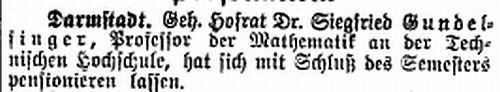 Mathematiker Prof. Dr. Siegmund Gundelfinger (1846-1910), der seinerzeit