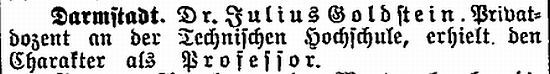 3. Dezember 1909: "Darmstadt. Dr. Julius Goldstein,