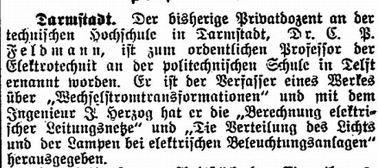 technischen Hochschule in Darmstadt, Dr. C. P. Feldmann, ist zum