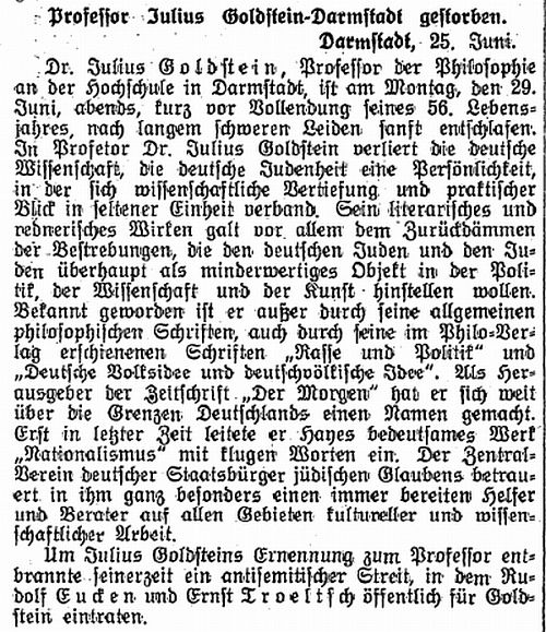 vom 27. Juni 1929: "Professor Julius Goldstein - Darmstadt