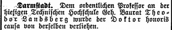an der hiesigen Technischen Hochschule Geh. Baurat Theodor Landsberg wurde