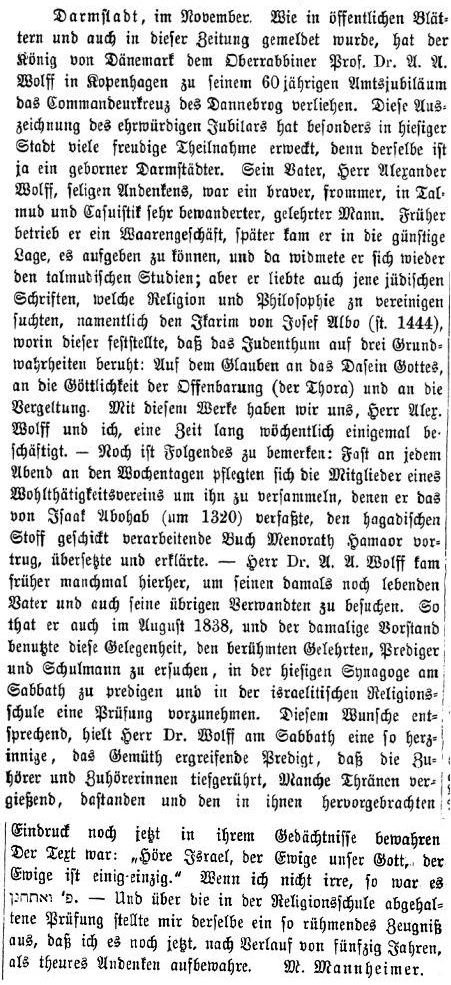 Artikel in der "Allgemeinen Zeitung des Judentums"