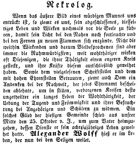 Leben geweihet hatte. Alexander Wolff hieß er im Leben, der nun