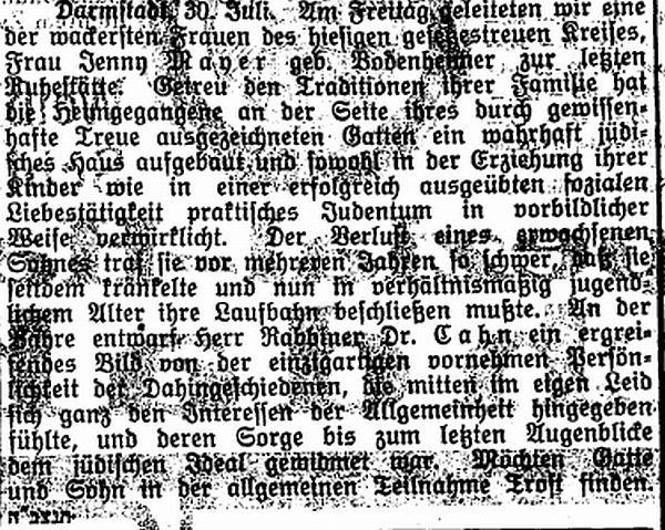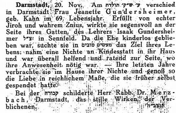Zum Tod von Jeanette Gundersheimer geb. Kahn
