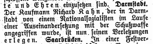 Richard Kahn, der in Darmstadt von einem Nationalsozialisten im Laufe