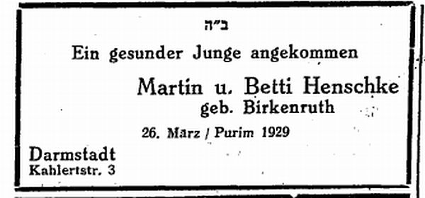 vom 16. Januar 1930: "Darmstadt. Der Kaufmann