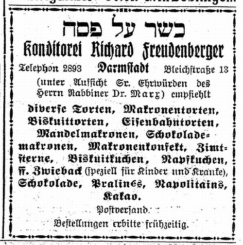 der Israelitischen Religionsgemeinde in Darmstadt, siehe hierzu die Seite: