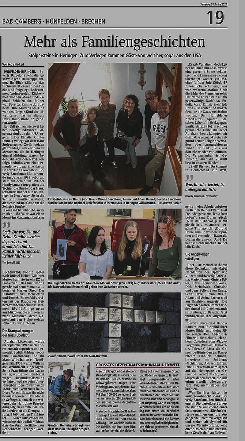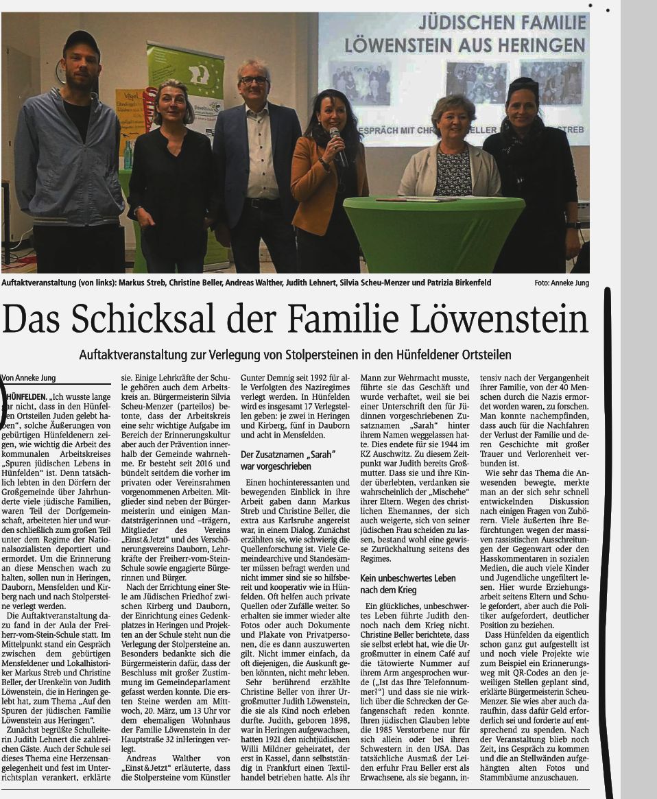 von Anneke Jung in der "Neuen Nassauischen Presse" vom 13. März 2024 zur Auftaktveranstaltung zur Verlegung von