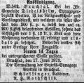in der "Karlsruher Zeitung" vom 20. Juni 1873: "Auskündigung.