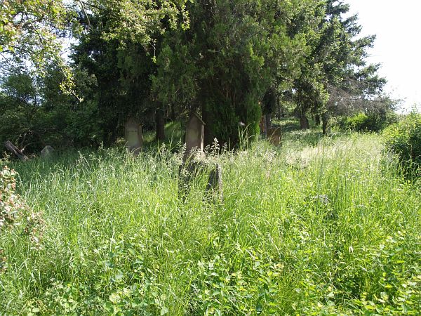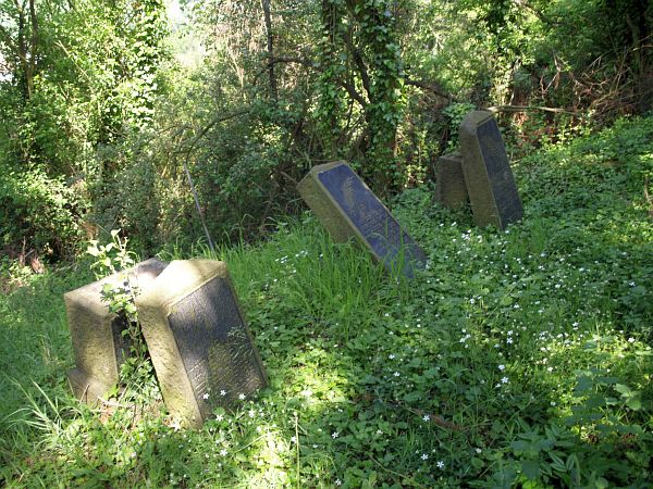 aufgerichtete Grabsteine - einen insgesamt sehr ungepflegten Eindruck. Der