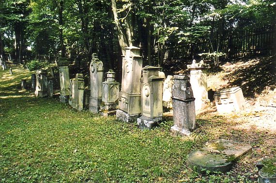 Grabsteine in zwei Grabreihen. Nachdem die meisten jüdischen Einwohner bis um