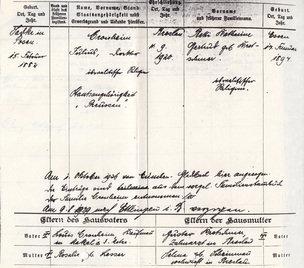 Kretschmer (1897), Julius Cronheim (1882), Franziska (Fränze) Neumann geb.
