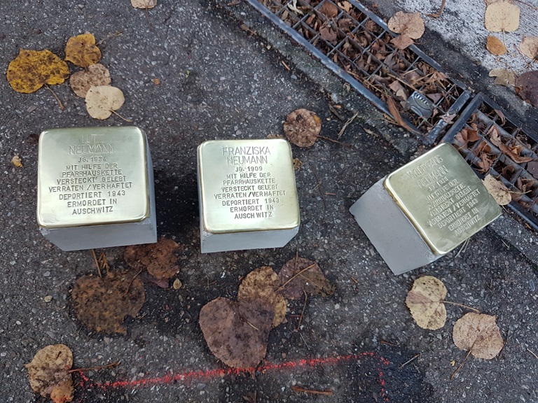 Mitglieder der Familie Neumann wurden 2018 "Stolpersteine" verlegt (siehe