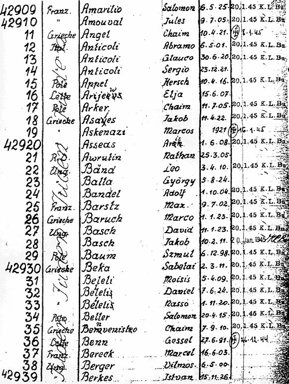 Die Häftlinge, allesamt jüdische Männer (vgl. links eine Seite der