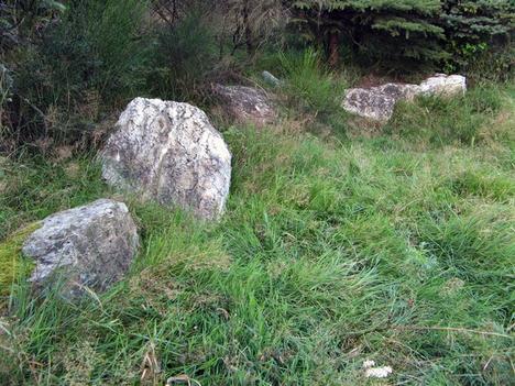 verschiedenen großen, unbehauenen Quarzitbrocken erinnern, die ein