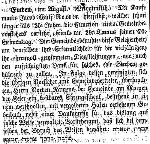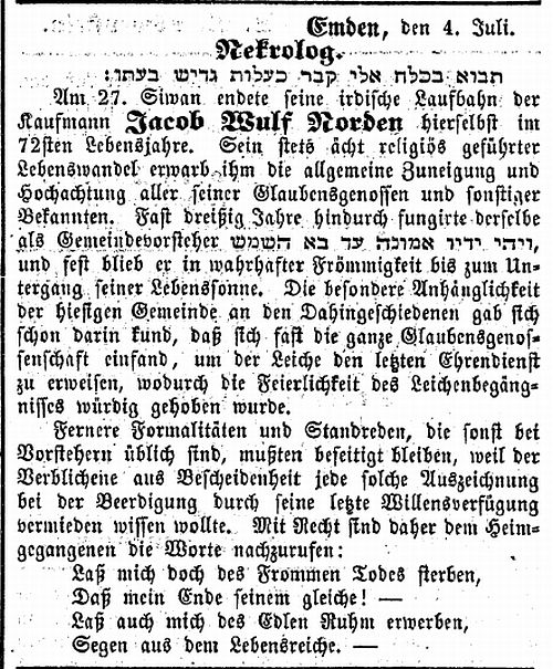 Zum Tod von Kaufmann Jacob Wulf Norden