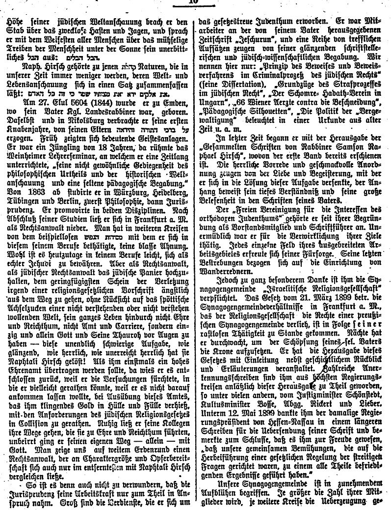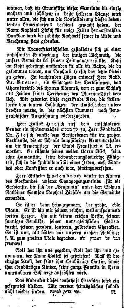 Zum Tod von Justizrat Dr. Naphtali Hirsch, Sohn von Rabbiner