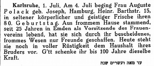 in der "Allgemeinen Zeitung des Judentums" vom 6. August