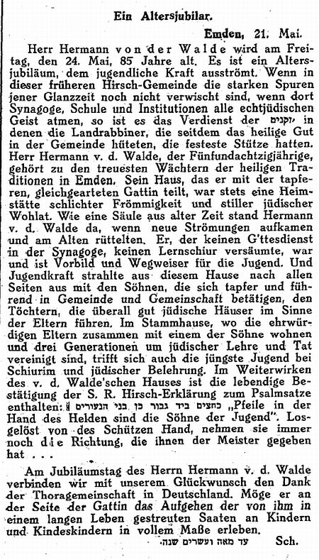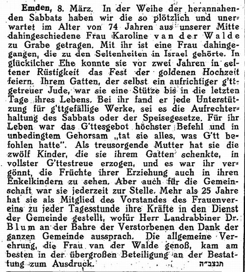 in der Zeitschrift "Der Israelit" vom 28. März 1929: |