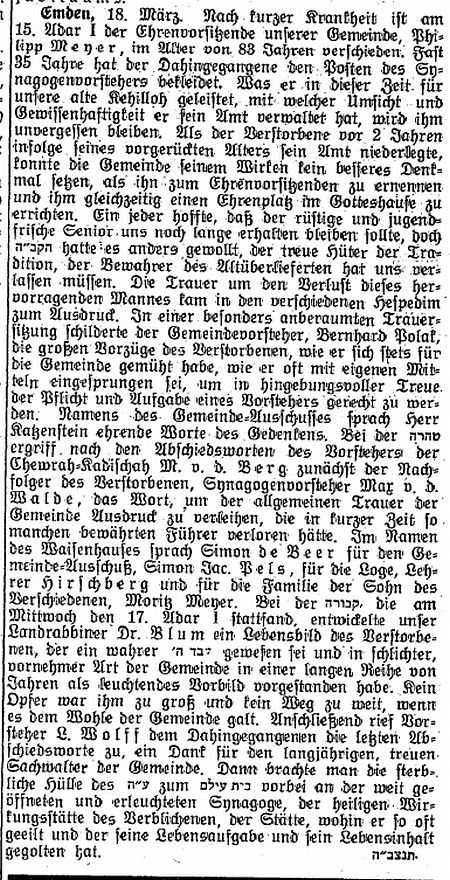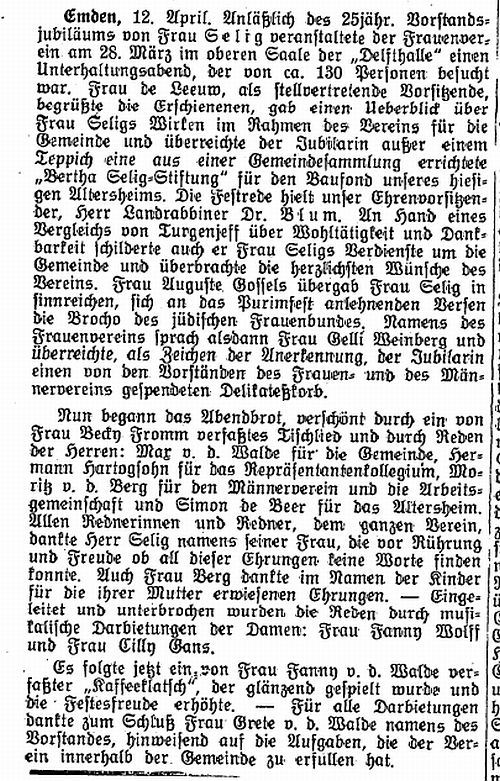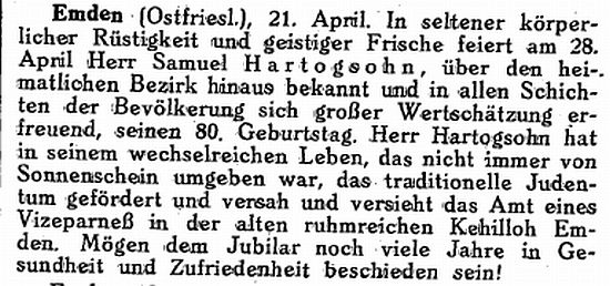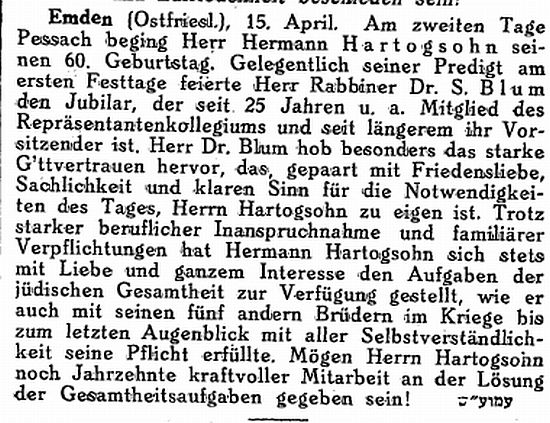 Beiträgen zur jüdischen Geschichte in Emden wurden in jüdischen Periodika