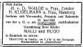 Hochzeitsanzeige von Malli van der Walde und Hugo Kugelmann