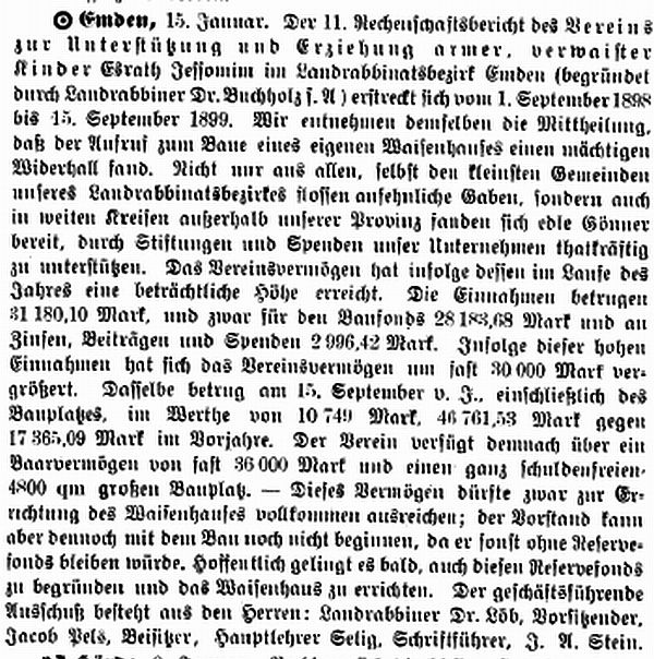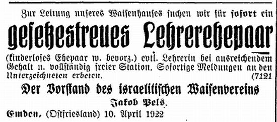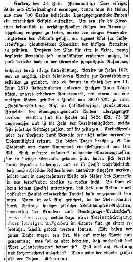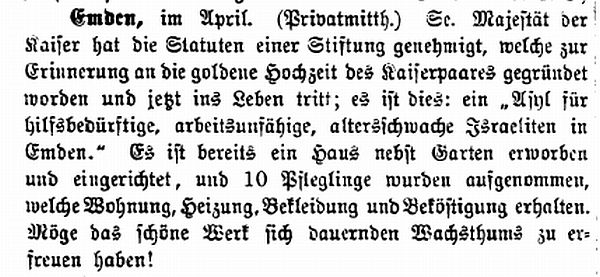arbeitsunfähige, altersschwache Israeliten in Emden.' Es ist bereits ein