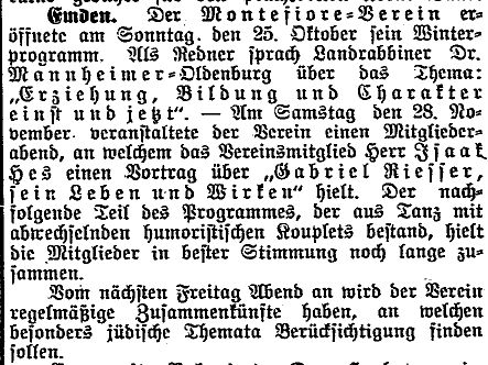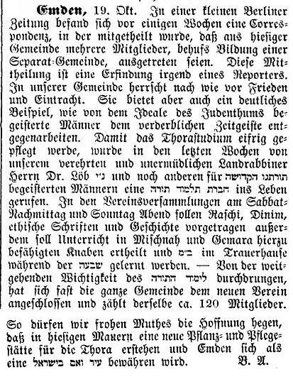 In Emden gibt es keine Separatgemeinde - Gründung eines Talmud-Tora-Vereins (1896)