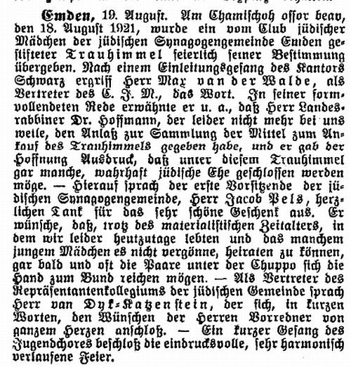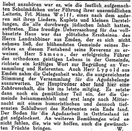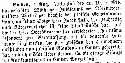 zündenden Worten den Dank der ostfriesischen Judenheit aus für seine