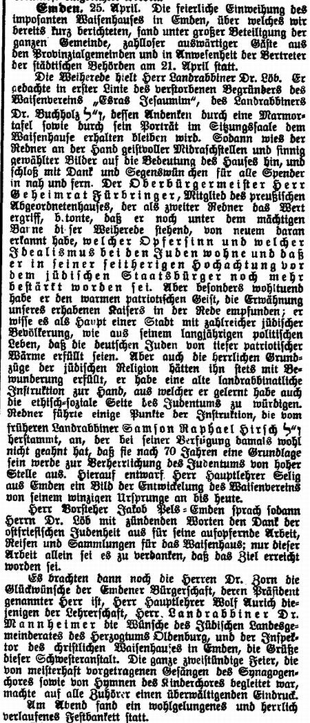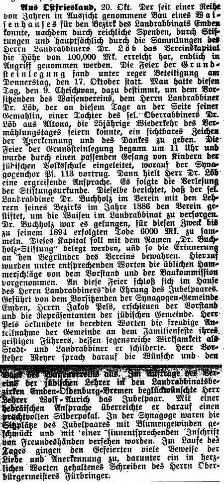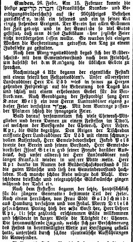 Herr Vorsteher Jakob Pels - Emden sprach sodann Herrn Dr. Löb mit