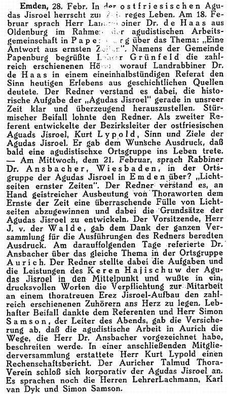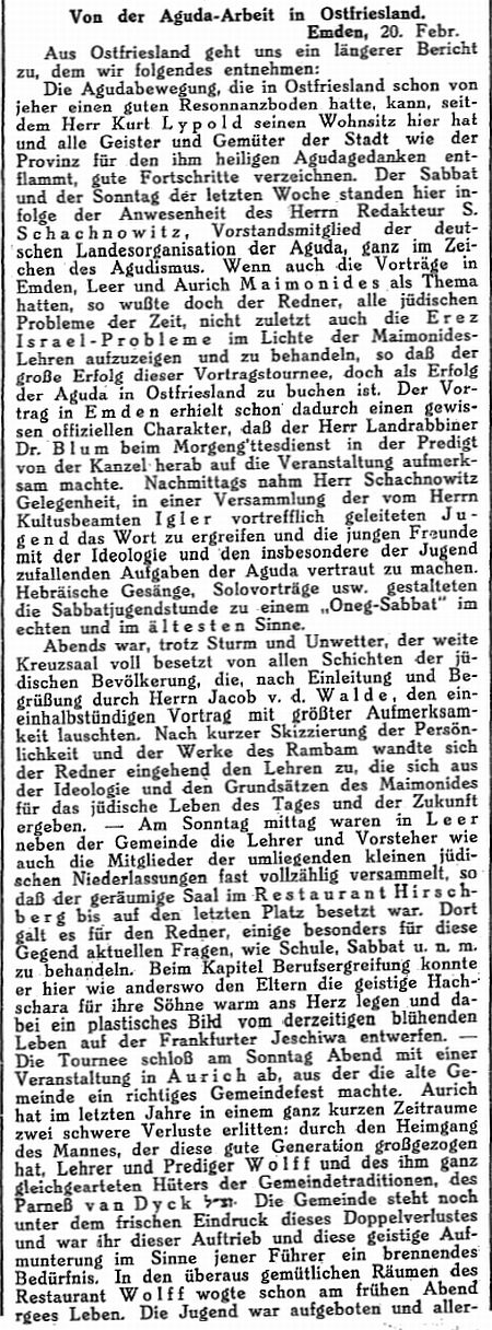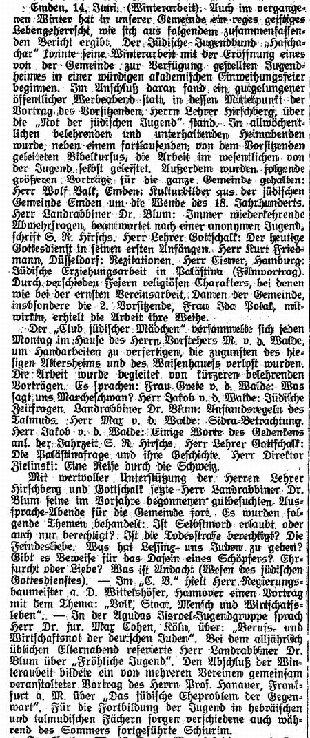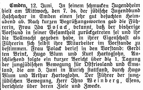 Beiträgen zur jüdischen Geschichte in Emden wurden in jüdischen Periodika