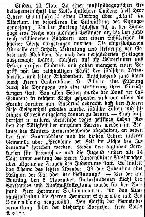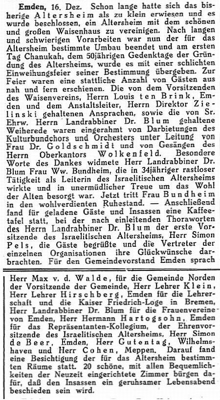 in Bremen, Herr Landrabbiner Dr. Blum für die Frauenvereine von Emden,