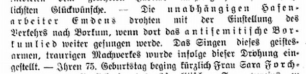 Feiertage). Die hiesige 'Emdener Zeitung' brachte in voriger Woche