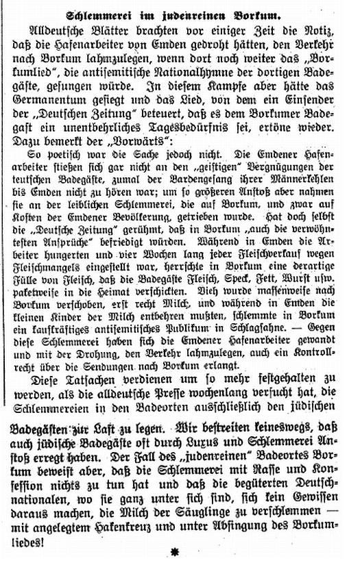 die geringste Bedeutung hatte. Dazu bemerkt das antisemitische 'Volk':