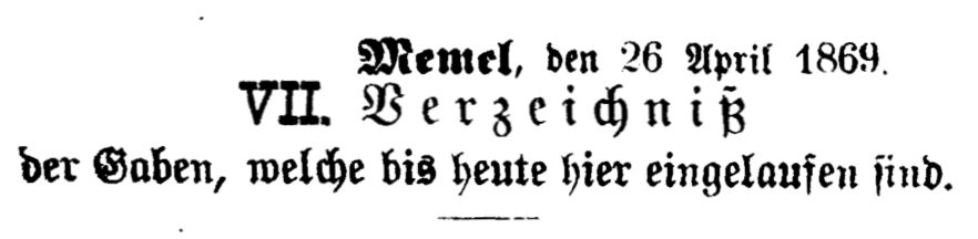 in "Der Israelit" vom 2. Juni 1869: "Memel, den 26. April 1869.