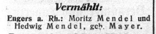 Engers am Rhein: Moritz Mendel und Hedwig Mendel geb. Mayer." |