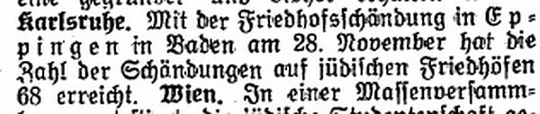 "Karlsruhe. Mit der Friedhofsschändung in Eppingen in Baden am 28.
