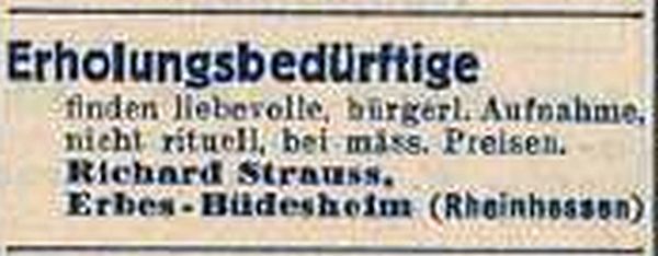 Richard Strauss. Erbes-Büdesheim (Rheinhessen)." |