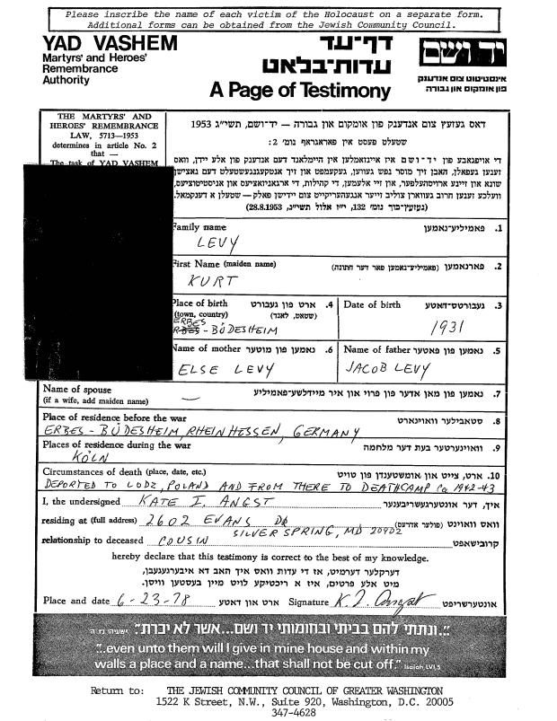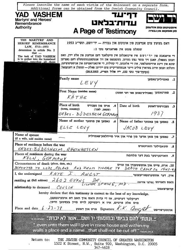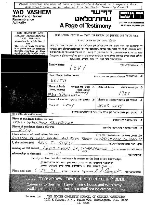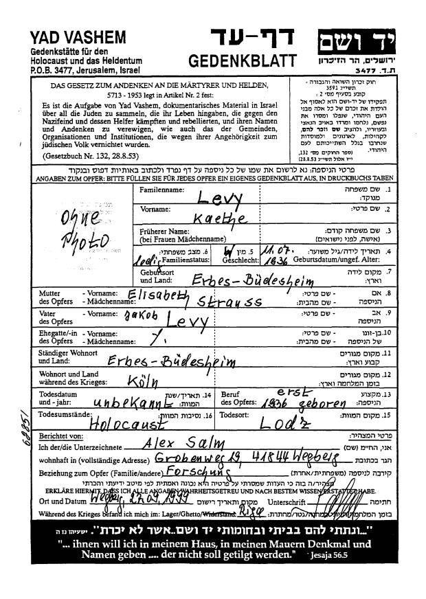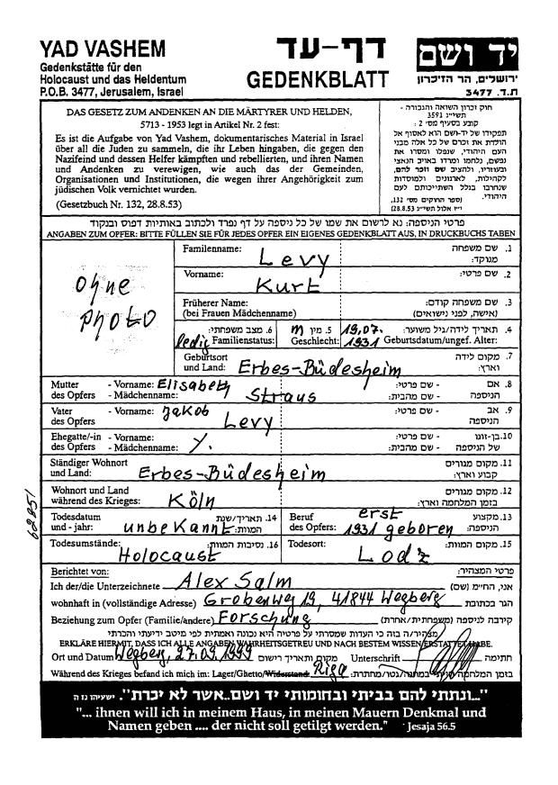 Dokumente aus der Gedenkstätte Yad Vashem Jerusalem https://yvng.yadvashem.org/