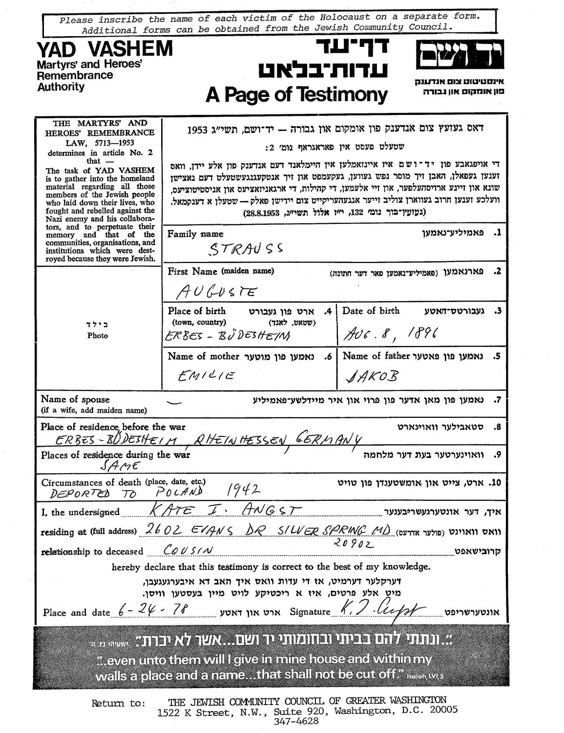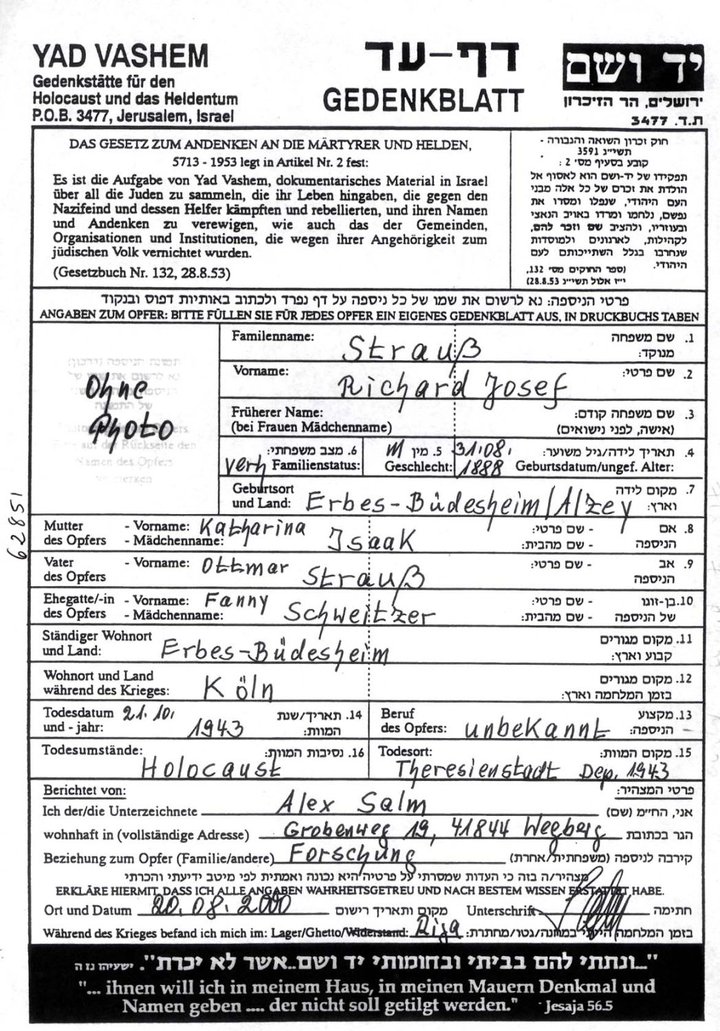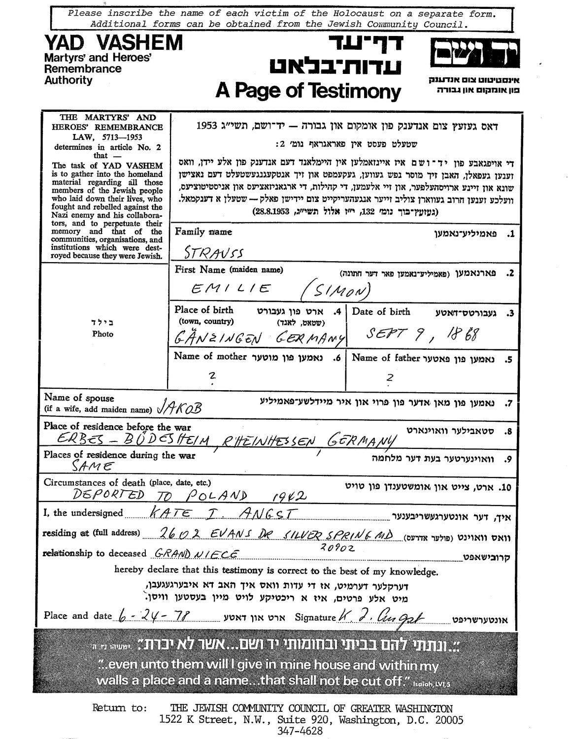 Dokumente aus der Gedenkstätte Yad Vashem Jerusalem https://yvng.yadvashem.org/