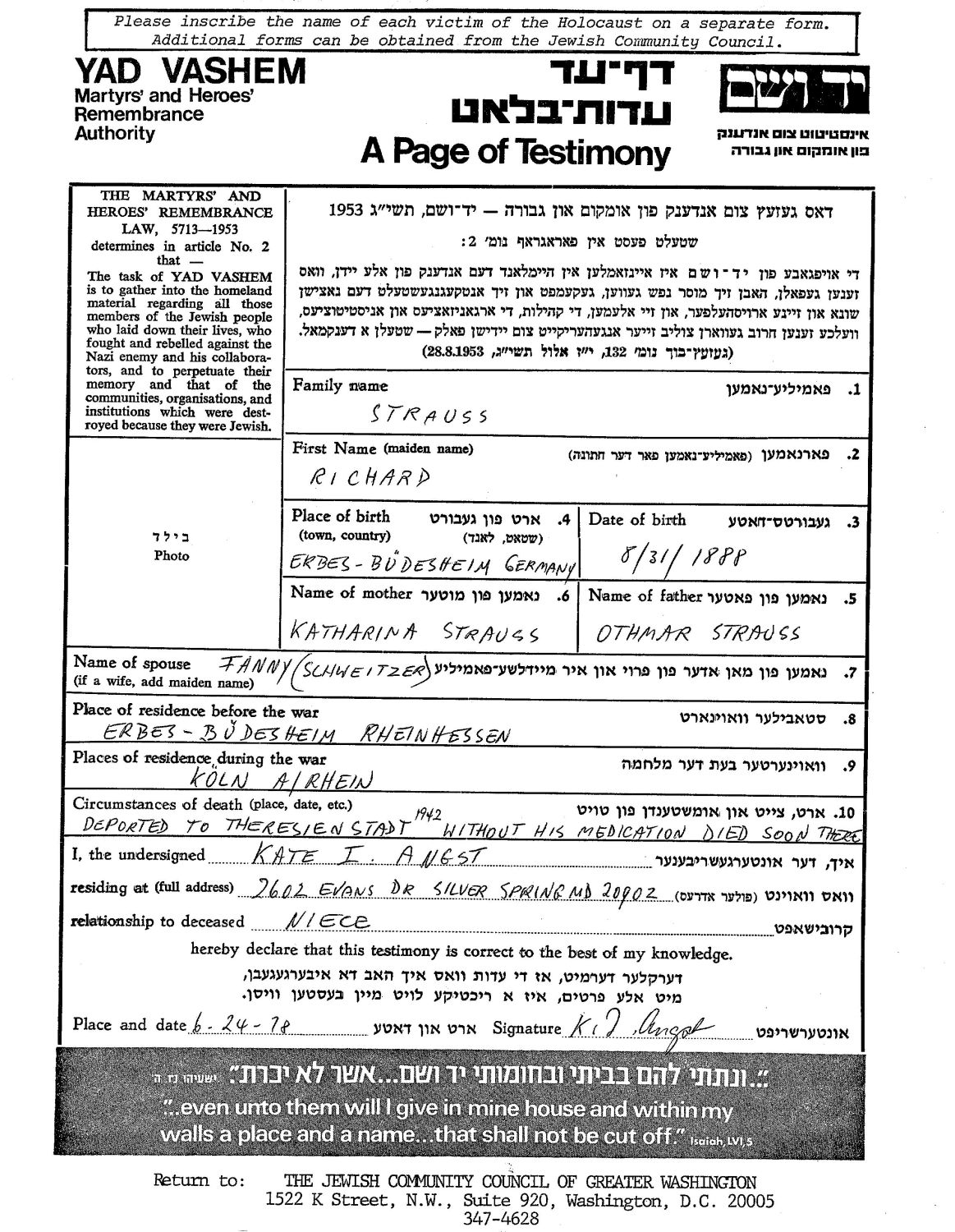 (1871), Richard Strauss (1888), Ruth Käthe Strauss (1924), Bertha Weil geb.