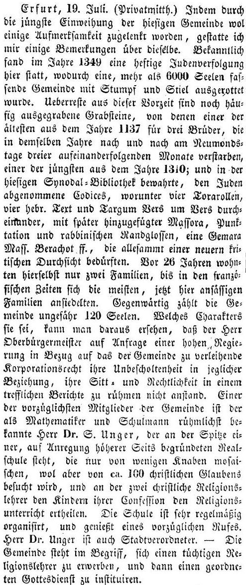 vom 1. August 1840: "Erfurt, 19. Juli (1840). Indem durch die
