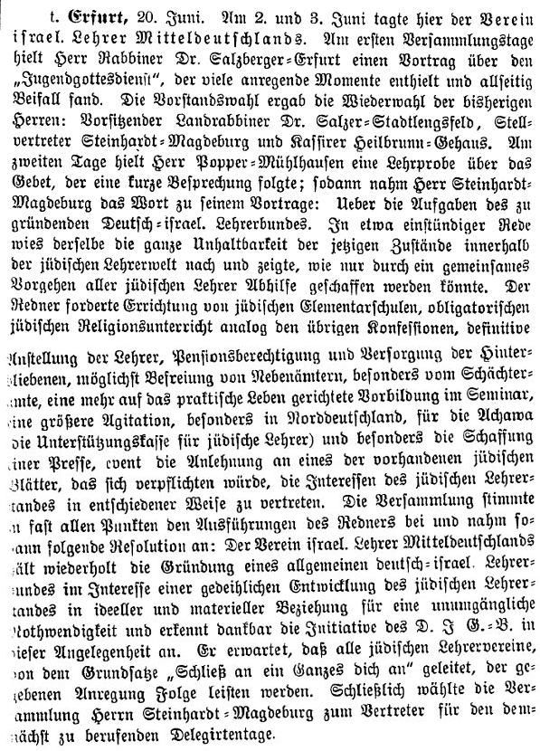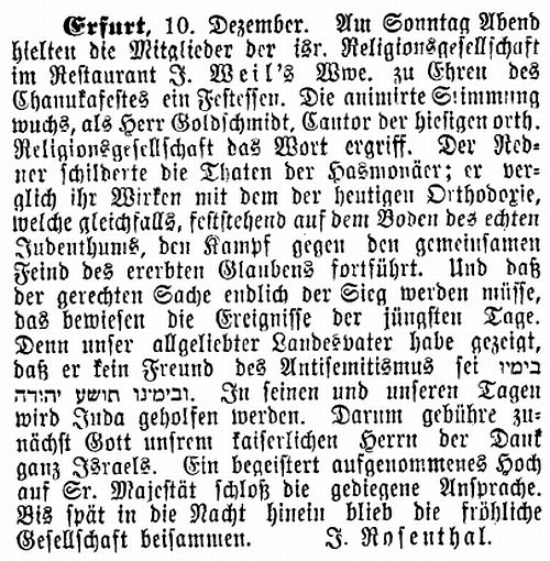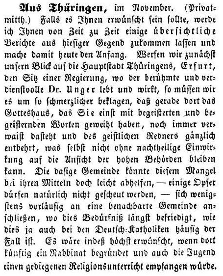 Beiträgen zur jüdischen Geschichte in Erfurt wurden in jüdischen Periodika