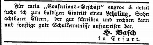 Anzeige des Konfektionsgeschäftes H. Basch