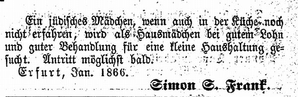 Erfurt, Januar 1866. Simon S. Frank." |