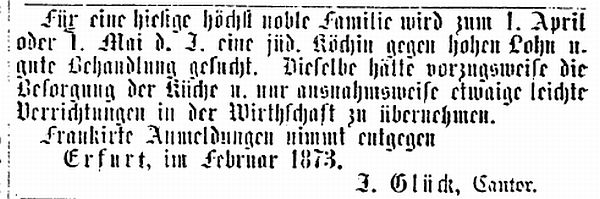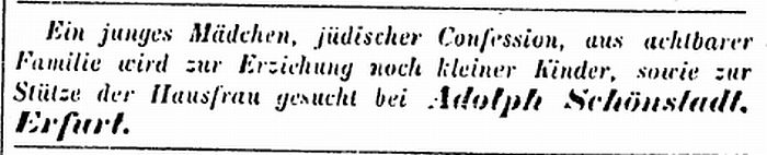September 1873: "Ein junges Mädchen, jüdischer Konfession, aus
