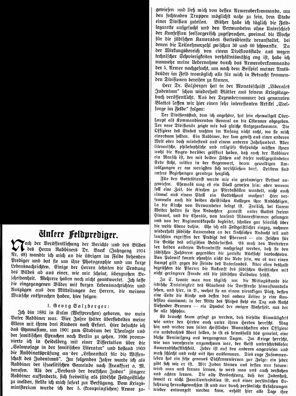 Artikel in der "Allgemeinen Zeitung des Judentums"