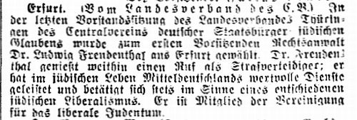 Rechtsanwalt Dr. Ludwig Freudenthal aus Erfurt gewählt. Dr. Freudenthal
