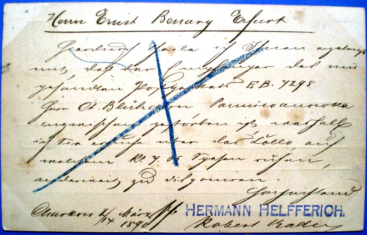 aus Charkow an Ernst Benary in Erfurt (1890)